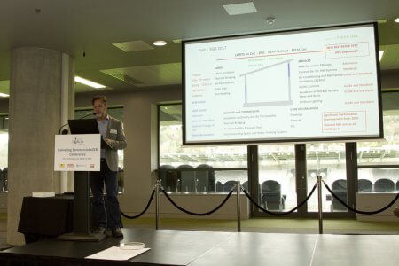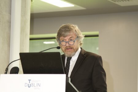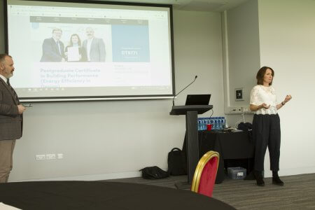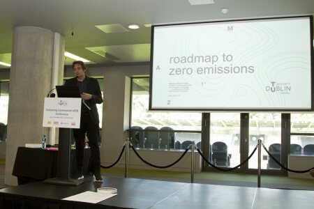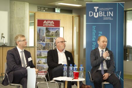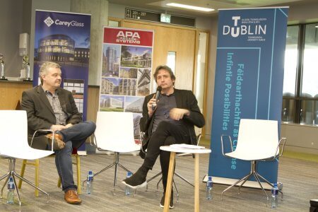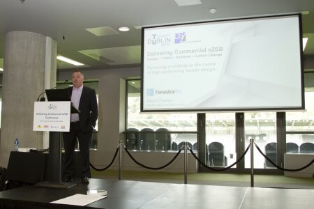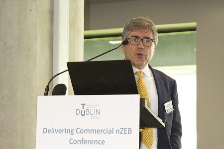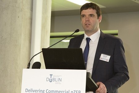 Joseph Little, Dublin School of Architecture, TU Dublin, introducing the Conference.Patrick Daly, of DSA (TU Dublin) speaking on “Commercial nZEB Regulations and Design Strategies”.Helmut Meyer of Transsolar Klima Engineering, Stuttgart – “New challenges require new thinking.”Martin Oates and Simon Hall of SE Controls.