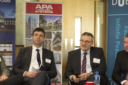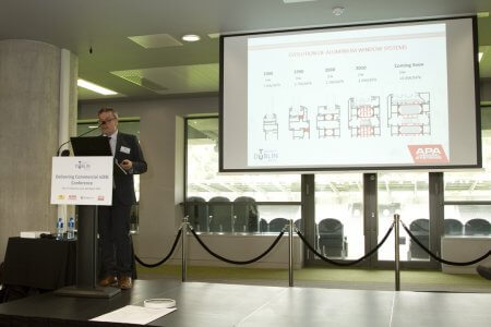 Aidan Harney of APA Facade Systems and Russell Moffat of Moffat Butler Architects.Professor Kevin McCartney of Cork Centre for Architectural Education, UCC.Alan Duggan of Arup – ” A holistic approach to achieving nZEB in commercial buildings.”Alan Duggan, Sean Hogan, and Donal O’Donohue during the Q&A.Pat Hanratty of APA Facade Systems, and Bill Carey of Carey Glass presenting a cheque for €6000 to the Cork Simon Community.Vivienne O’Mahony of Cork Simon Community receiving a cheque for €6000, with Joseph Little of the Dublin School of Architecture, TU Dublin and Aidan Harney of APA Facade Systems.David Palmer of Fenestra Pro – “Restoring architects to the centre of high performing facade design.”Carole Pollard of DSA TU Dublin giving a 5-minute presentation on DT9771 – the Post Graduate Certificate in Building Performance (Energy Efficiency in Design).Aidan Harney of APA Facade Systems – “The effects of commercial fenestration design on nZEB.”Tim Magee, Helmut Meyer and Patrick Daly.Stephen Smyth (Carey Glass).Thomas Vaughan (GS Renewables).Discussing the changes required in “Bau Kultur” and how to achieve them in the workplace.Stephen Smyth of Carey Glass and Aidan Harney of APA Facade Systems during the Q & A.2nd keynote speaker Sebastian Moreno-Vacca of A2M – ” roadmap to zero emissions.”Keynote speakers Helmut Meyer of TransSolar (Stuggart) and Sebastian Moreno-Vacca of A2M during final Q&A.